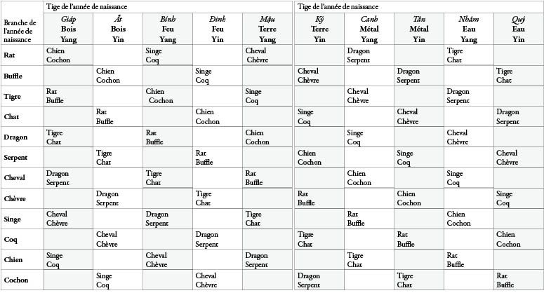 Repérer votre tige de l’année de naissance. Reporter le moyen caractère ‘Destructeur’ à cheval entre les deux cases animaux mentionnées.