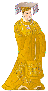 A la case du Buffle et de la Chèvre, couleur jaune. C'est un empereur honnête, indépendant, qui a une capacité de direction et de jugement aisée et créatif (dans l'idée de stabilité et de matrice). Mais ses actions ne peuvent éviter la fatigue et il fluctue dans ses projets, n'est pas fort en commerce (il est avec le Révolutionnaire).